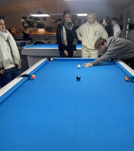 Die Kooperation geht mittlerweile sogar weit über den Rahmen der wöchentlichen AG hinaus. Der Leistungskurs Sport von Hr. Gläser besuchte im November 2024 das Clubhaus und konnte in einem Gespräch mit dem Billard-Europameister Dirk Schwedes viele Details zu Trainingsinhalten sowie der Trainingsplanung erfahren. Anschließend konnten die Schüler/innen an den Tischen einige Übungen unter Anleitung des Profis ausprobieren.