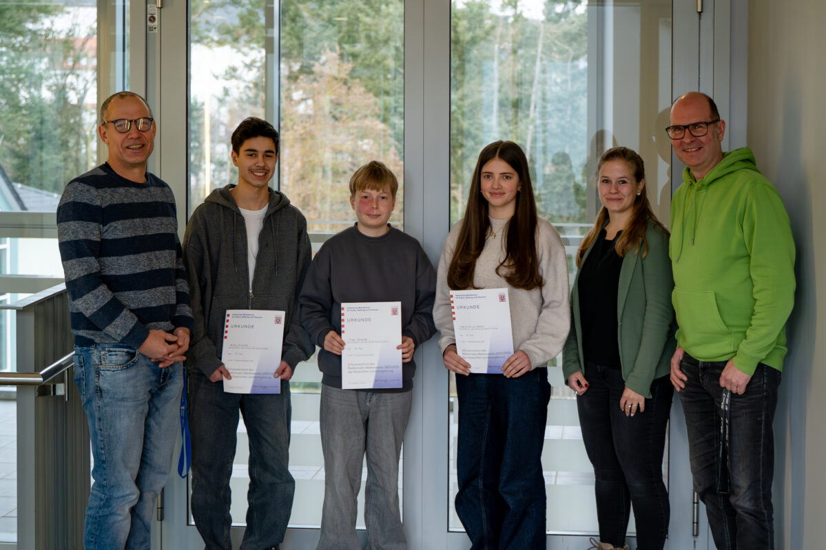 Besonders erfolgreich waren drei Teilnehmende, die sich als Schulsiegerinnen und Schulsieger durchsetzen konnten. Sie wurden mit einer Urkunde ausgezeichnet und erhielten zudem einen Buchgutschein, der vom Förderverein der Schule gestiftet wurde. Ein herzlicher Dank gilt dem Förderverein für diese Unterstützung.