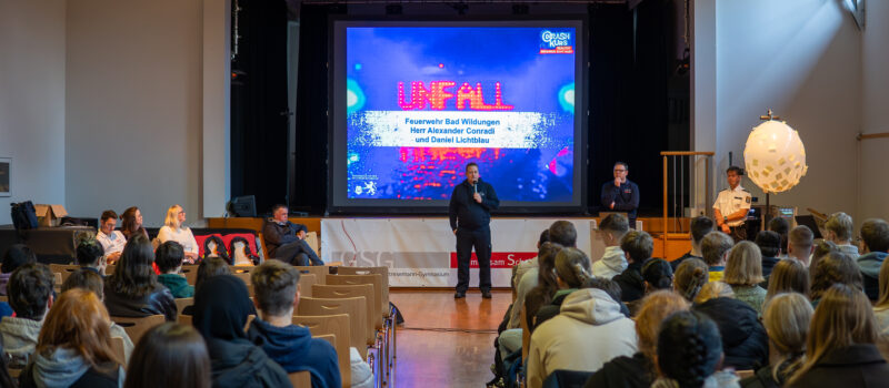 Am Mittwoch, den 29. Oktober 2025, fand an unserer Schule erstmals das Präventionsprojekt „CrashKurs Hessen“ statt. Ziel des Programms ist es, Schülerinnen und Schüler der Qualifikationsphase nachhaltig für Gefahren im Straßenverkehr zu sensibilisieren – insbesondere für Risiken durch Ablenkung (etwa Smartphones), Alkohol und Drogen sowie überhöhte Geschwindigkeit.
